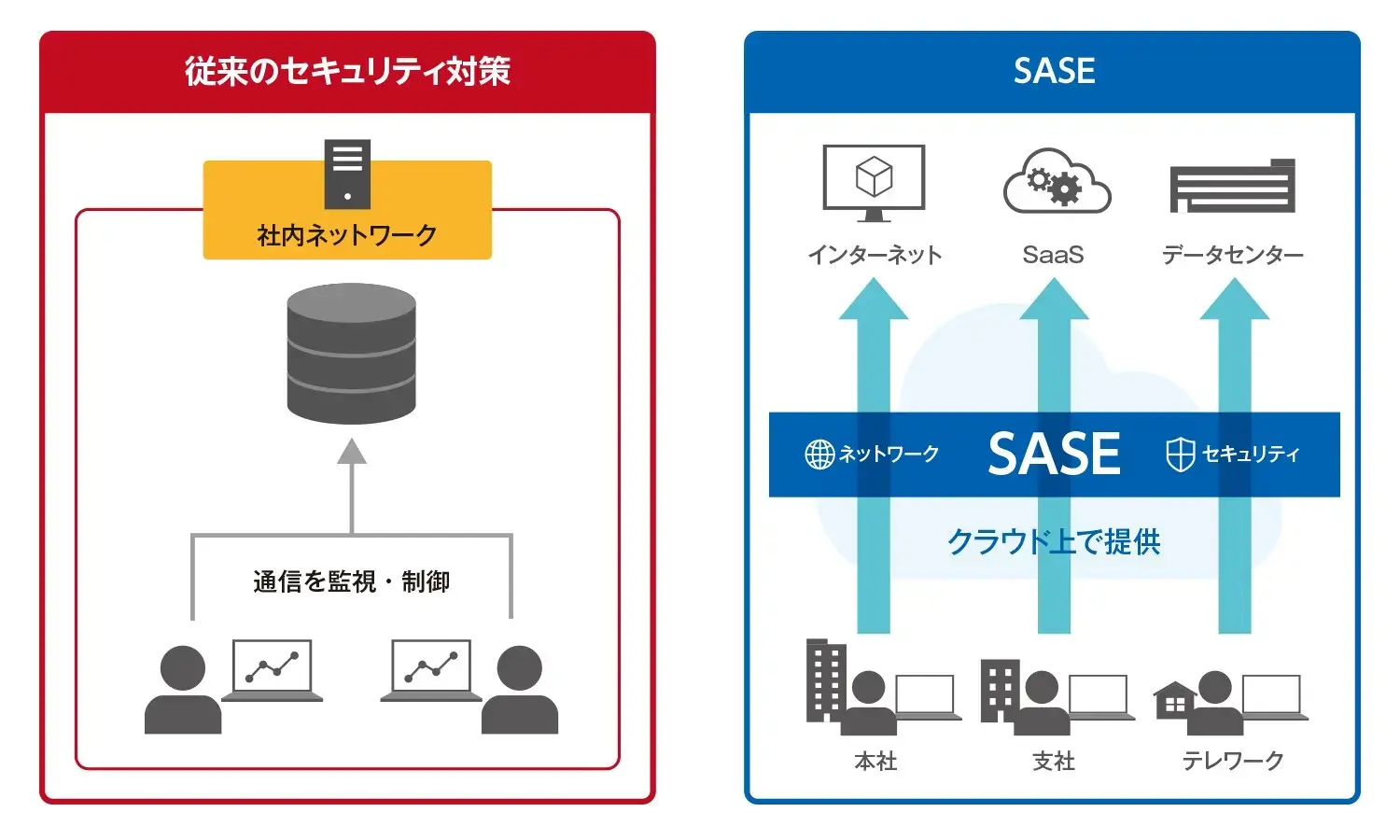 ※本記事では割愛しますが、ゼロトラストの考え方を実現するためには、SASE以外にも複数の方法があります。