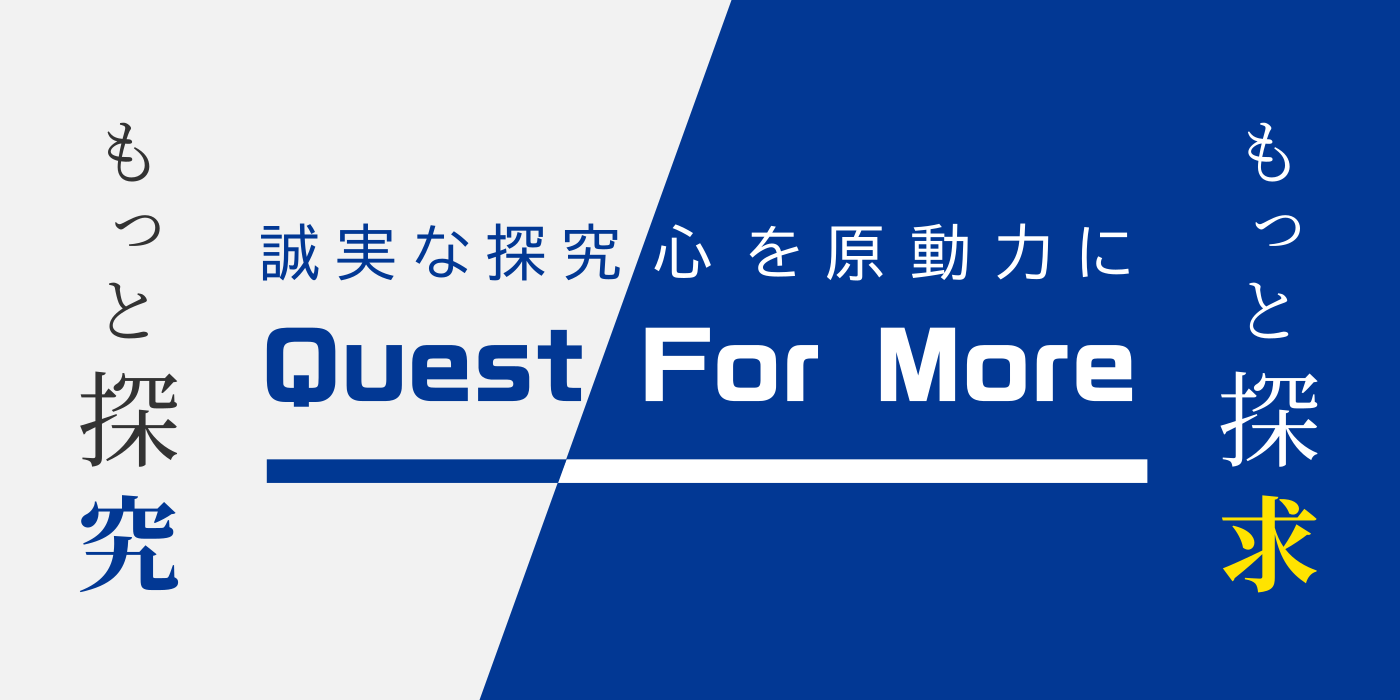 クエストが企業の遺伝子として最も大切にする「誠実な探究心」を原動力に、“もっと探究・もっと探求”する意思をスローガンに込めています。